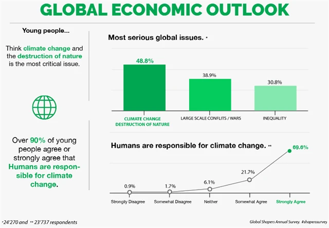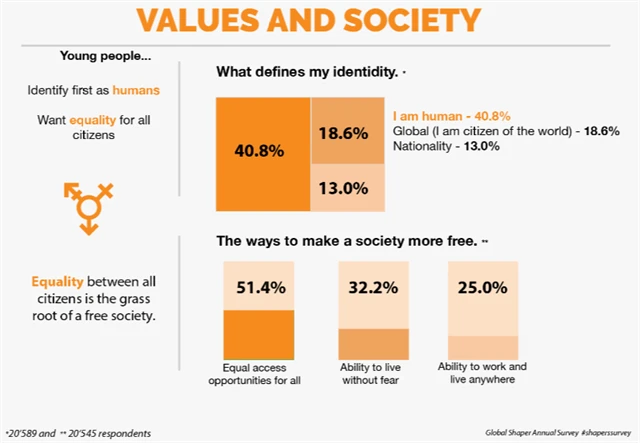 Téměř 32 tisíc lidí ve věku 18 až 35 let ze 186 zemí se ve výzkumu iniciativy Global Shapers Community fungující pod záštitou Světového ekonomického fóra vyjadřovalo k pěti klíčovým tématům současnosti. Co na sebe mladí prozradili?