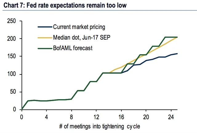 Podle Bank of America Merrill Lynch obchodníci nadále podceňují tempo, jímž Fed může zvyšovat svou základní úrokovou sazbu. To může mít široký dopad.