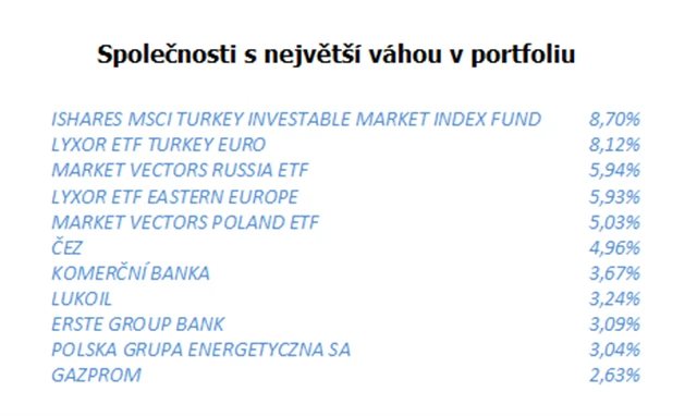 PH: Fond je určen dynamičtějším dlouhodobým investorům, kteří vyhledávají zajímavé investiční příležitosti a chtějí profitovat z potenciálu vyššího hospodářského růstu a nízkého zadlužení rozvíjejících se ekonomik střední a východní Evropy, jejichž trhy však v některých případech mohou být pro běžného investora obtížněji přístupné, třeba z důvodu vysokých transakčních nákladů.