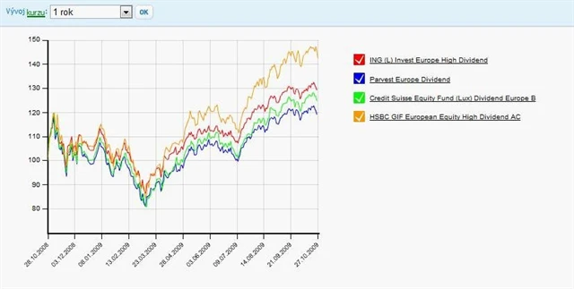 Naproti tomu index od začátku letošního roku posílil o třicet procent a k tomuto výsledku se přiblížil pouze fond HSBC GIF European Equity High Dividend. Ostatní fondy posílily v průměru jen kolem dvaceti procent.