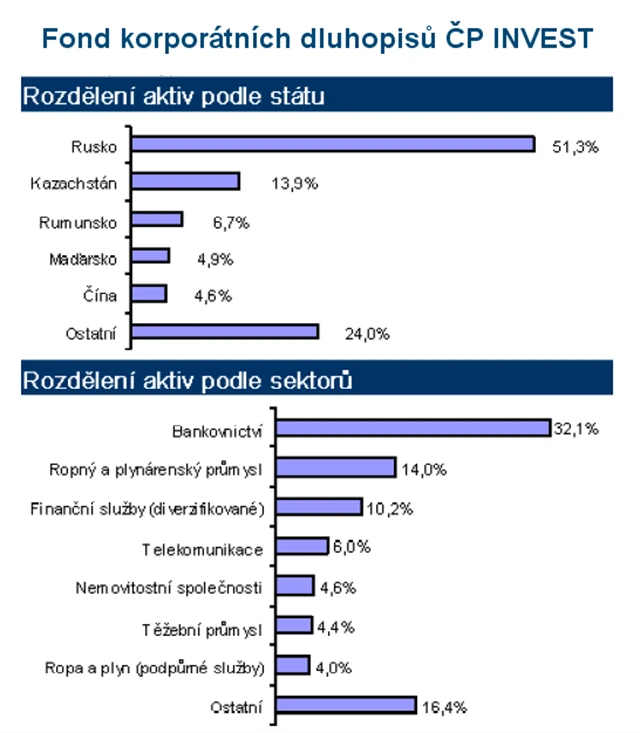 Z názvu je jasné, že jde o korporátní (firemní) dluhopisy, ale je potřeba dodat, že takovýchto dluhopisů je celá řada a liší se především podle regionu, sektorů nebo ratingu. Náš fond je specifický tím, že se regionálně zaměřuje na rozvíjející se trhy, zejména v regionu střední a východní Evropy, ale máme i dluhopisy z latinské Ameriky nebo Číny. Sektorově nemáme žádné preference a díváme se hlavně na fundament hospodaření samotných firem, které tyto dluhopisy vydávají. Z hlediska ratingu fond obsahuje přes polovinu dluhopisů s investičním ratingem a zbytek tvoří dluhopisy, které mají rating neinvestiční, tzn. že jde o dluhopisy více spekulativní povahy.