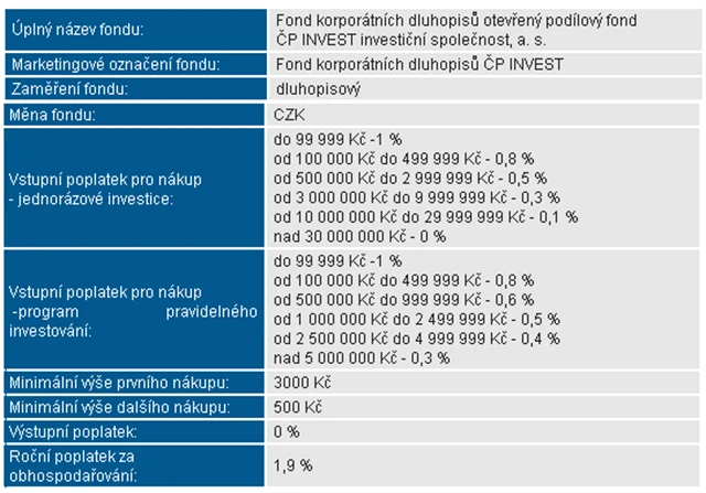 Fond korporátních dluhopisů je na pomezí smíšeného fondu a konzervativního profilu. Do roku 2008 se fond choval velmi konzervativně, ale finanční krize, která byla nejsilnější od Velké deprese v třicátých letech minulého století, ukázala, že fond se svým chováním mezi konzervativní řadit nedá.