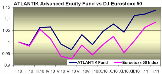 MJ: V roce 2010 se nám podařilo dosáhnout výnosu přes 10 procent spolu s částečnou ochranou před případnými propady trhů. To podle mě není špatné v porovnání s indexem DJ Eurostoxx 50, který skončil v mínusu. Naším cílem je dosahovat vysokých výnosů s přijatelnou mírou volatility. Případná vysoká ztráta v krizových letech je totiž pro investory našeho fondu neakceptovatelná.