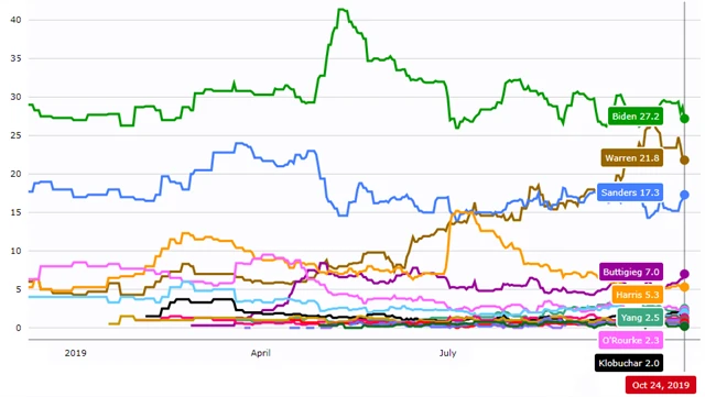 Favority demokratů pro příští prezidentské volby jsou zatím Joe Biden, Elizabeth Warrenová a Bernie Sanders, přičemž komentátoři tvrdí, že silnou protikandidátkou Trumpa by mohla být zejména Warrenová, jež je výraznou osobností s jasnými postoji, dostatečně protikladnými k těm, které zastává současný šéf Bílého domu.