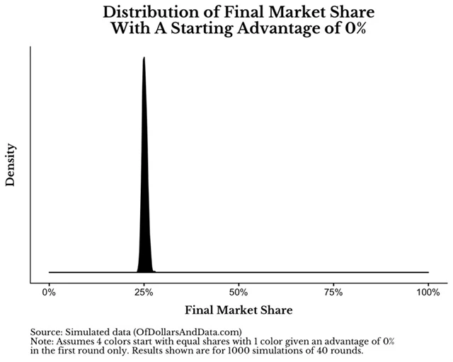 Je zřejmé, že počáteční zvýhodnění má na konečný výsledek obrovský vliv. Místo kuliček v pytlíku si přitom můžeme představit například peníze, popularitu nebo třeba vzdělání.