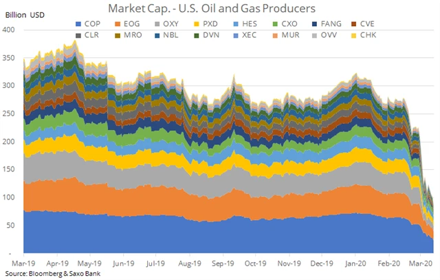 Ropa Brent spadla na 18leté minimum. Fond SPDR Energy Select ETF (XLE), zahrnující některé z největších amerických ropných společností, spadl od prosince o více než polovinu. Mezitím byla skupina 12 významných nezávislých amerických producentů ropy a plynu svědkem toho, jak se jejich tržní kapitalizace propadla z více než 300 miliard dolarů na necelých 90 miliard.