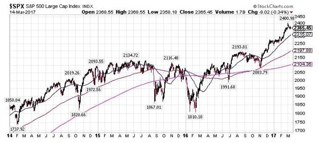 Ani současný býčí trend (ponechme stranou, zda technicky trvá od března 2009, nebo až od překonání předchozího maxima z roku 2007 zhruba před čtyřmi lety) nebyl bez výkyvů. Poslední větší zářezy v grafu jsou patrné na začátku roku 2016 a ve druhé polovině roku 2015. Ale celý trh (vyjádřeno indexem S&P 500) se do medvědího teritoria (pokles o 20 % a více) od března 2009 nedostal, navíc propady měly zpravidla jepičí život.