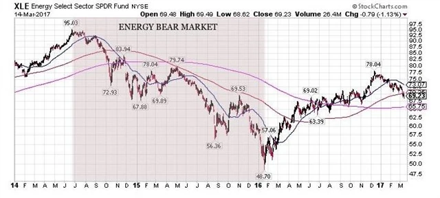 Nejhůře si ve sledovaném období vedl energetický sektor. Propad cen ropy se odrazil také ve výkonnosti akcií v tomto odvětví. ETF Energy Select Sector klesl mezi červnem 2014 a lednem 2016 o 49 %.