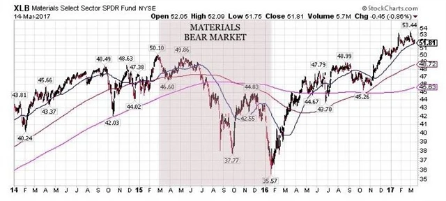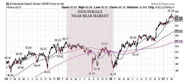 Většinou šlo o sektory považované za cyklické, respektive ty, které citlivěji reagují na celkovou náladu v ekonomice. Asi největší korelaci s indexem S&P 500 vykazuje sektor průmyslu, který však stejně jako samotný index nakonec medvědí trend nezažil, i když k tomu mezi únorem 2015 a lednem 2016 nechybělo mnoho (-18 %).