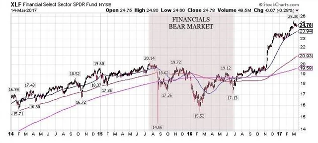 Finanční sektor od zvolení Donalda Trumpa americkým prezidentem sice zažívá boom, ale mezi červencem 2015 a červnem loňského roku ztratil téměř čtvrtinu hodnoty.