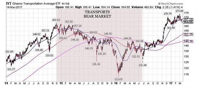 Součástí sektoru průmyslu je ale subsektor dopravy, který nakonec "medvěda" zažil, a to dost dlouhého. Mezi listopadem 2014 a červnem 2016 ztratil téměř třetinu hodnoty (-31 %).