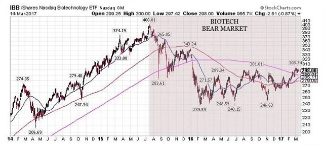 Pokud bychom i v rámci zdravotnického odvětví šli více do hloubky, také najdeme subsektor, který na rozdíl od hlavního oboru ztrácel opravdu výrazně. Od června 2015 to byly biotechnologie. Vlastně jde o druhý nejhorší výsledek v celém seznamu (-40 %). I přes dobrý výkon v letošním roce je tento segment trhu stále v medvědím teritoriu.