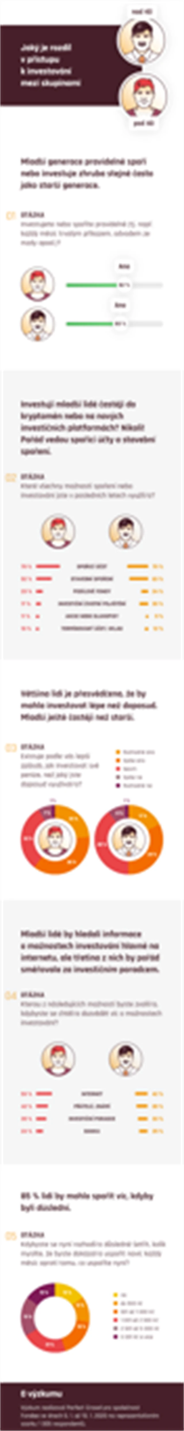 Pokud jde o zhodnocování peněz, mladší lidé se od předchozí generace příliš neliší. Tři čtvrtiny respondentů v posledních letech spořili nebo investovali, tři z pěti oslovených pak tvrdí, že spoří nebo investují pravidelně.