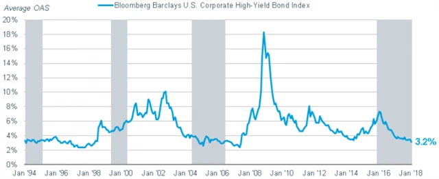 U dluhopisů s vyšším kreditním rizikem však taková jednota nepanuje. Výnosy u dluhopisů s vysokým výnosem někdy oproti 10letým státním dluhopisům rostly, jindy klesaly, někdy byl rozdíl minimální.