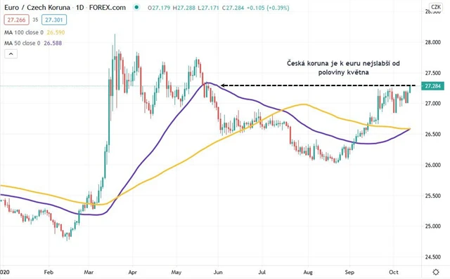 Důvod? Česká koruna je vůči euru nejslabší od května, kdy během uzavření ekonomiky skokově oslabila. Vůči dolaru také od konce srpna ztrácí. Proto neočekávejme, že cena zlata v korunách bude v nadcházejícím období korigovat níže, vyhlídky pro korunovou cenu zlata jsou spíše růstové.