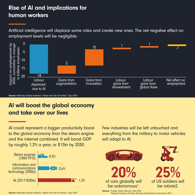 Umělá inteligence posílí světovou ekonomiku a zasáhne do našich životů. Zajistí vetší růst produktivity než vynález parního stroje a internetu dohromady. V roce 2030 přispěje ke globálnímu HDP zhruba 1,2 % (13 bilionů USD). Některé sektory zůstanou prakticky nedotčeny, ale většina (od armády po dopravní prostředky) se umělé inteligenci přizpůsobí. Pětina aut bude autonomních a čtvrtinu vojska budou tvořit roboti a roboty.