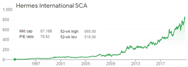 Samotné kabelky v uplynulých dvaceti letech prohrávají s akciemi svého výrobce, společnosti Hermès. Ty si v průměru za rok připsaly 15,5 %. Jde ale o vysoce nadprůměrnou výkonnost, index S&P 500 dosáhl ve stejné době v průměru zhruba třetinové roční výkonnosti.