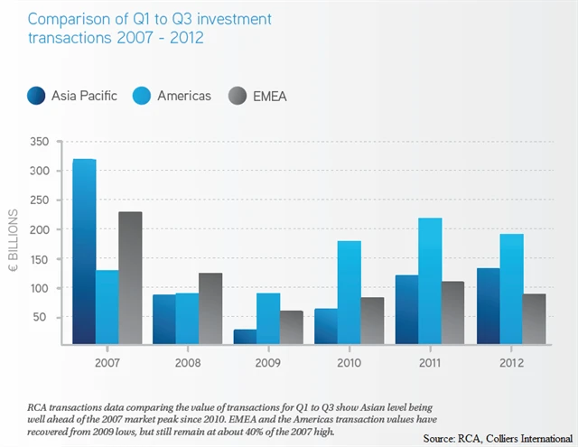 Pokračující oživení: Během roku 2013 se na západních trzích očekává mírný růst objemu investic. Počet příležitostí ke klíčovým realitním investicím bude ale značně omezený, investoři se zaměří pouze na atraktivní trhy.