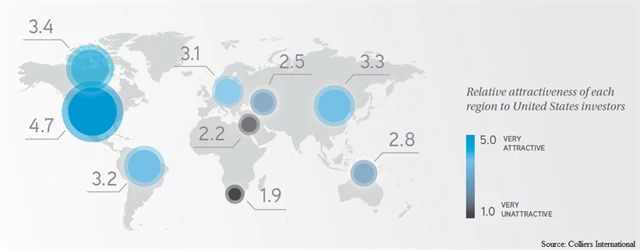 Spojené státy jsou v hledáčku realitních investorů nejčastěji ze všech světových oblastí. V jejich prospěch hraje fakt, že je jako vhodnou investiční příležitost nevidí pouze investoři domácí. Dalším důležitým trendem je nárůst počtu ambiciózních expanzních plánů (offshore investic) v USA.