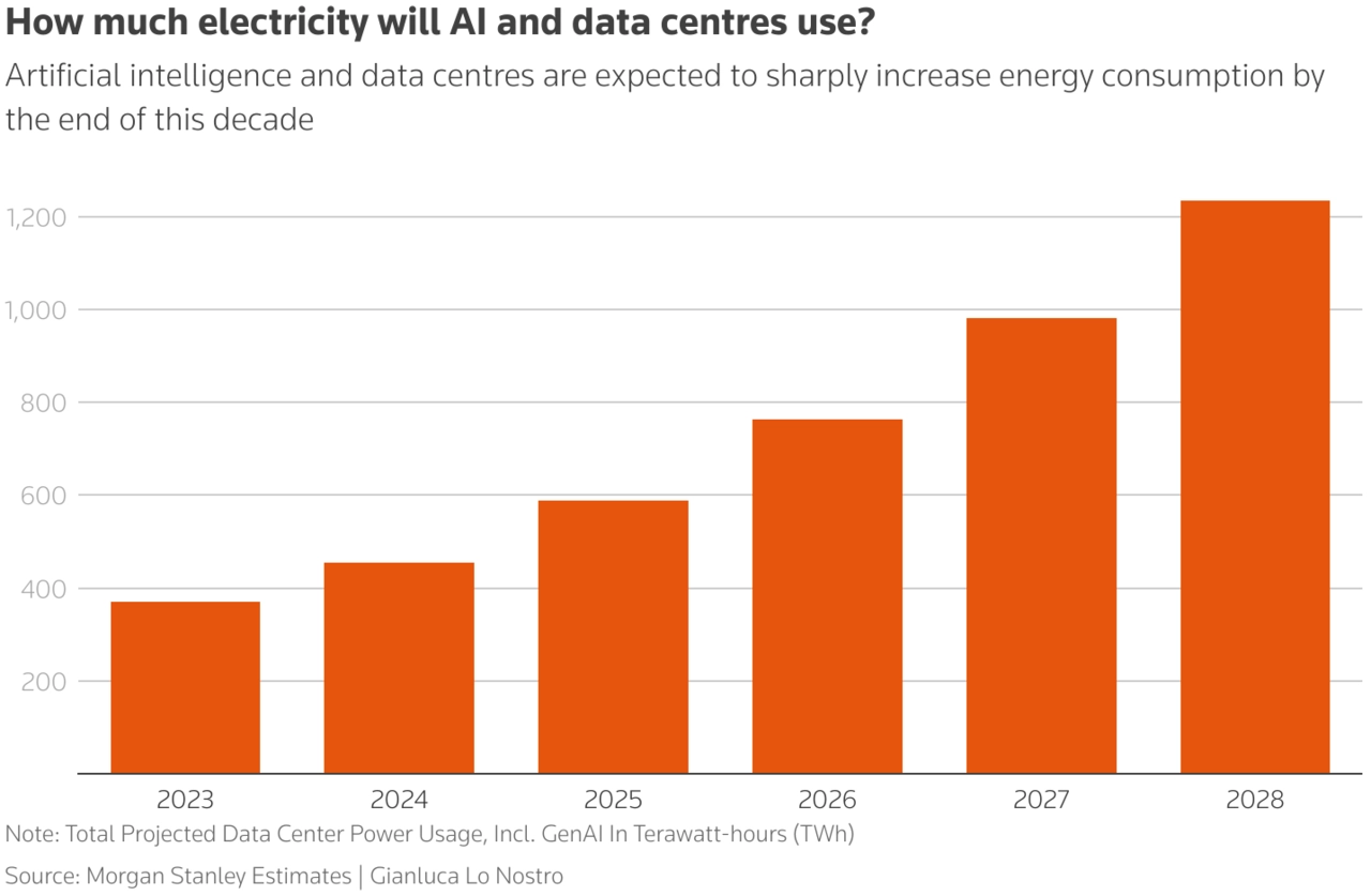 Rostoucí počet aplikací a služeb založených na umělé inteligenci vede k bezprecedentnímu nárůstu potřeby výpočetních zdrojů. Datová centra ale podle expertů mohou brzy začít narážet na limity, protože tempo růstu jimi spotřebovávané elektřiny je mnohem vyšší než tempo růstu kapacity elektrických sítí. Podle některých odhadů může množství elektřiny spotřebovávané AI do roku 2030 vzrůst o více než 160 %. Stále zřetelněji se tak ukazuje, že tradiční model výstavby AI infrastruktury nebude dlouhodobě udržitelný.