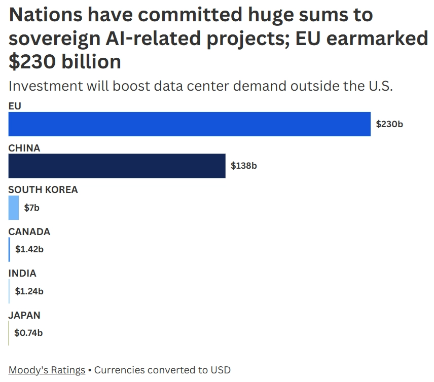 Energetická náročnost datových center přitom prudce roste. Podle Mezinárodní energetické agentury by jejich spotřeba mohla do roku 2026 překročit 1 000 TWh ročně, což je více než dvojnásobek oproti roku 2022, a to především kvůli AI. Elektřina je přitom největší provozní položkou, což je v Evropě obzvláště citlivé téma po energetické krizi vzniklé po ruské invazi na Ukrajinu. Například v Británii jsou ceny energií stále zhruba o tři čtvrtiny vyšší než před válkou.