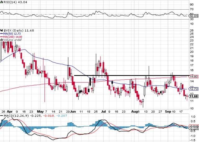 Index volatility VIX je po výletu k hladině 15 před dvěma týdny opět nízko. Pro akcie vysílá býčí signál, z podobně nízkých úrovní ale logicky mívá tendenci růst.