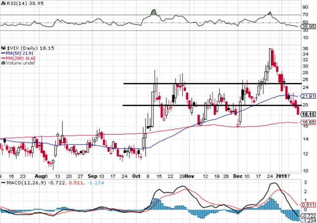 Index volatility VIX se od Vánoc sune níže. Ve čtvrtek a v pátek se jasně dostal pod 20.