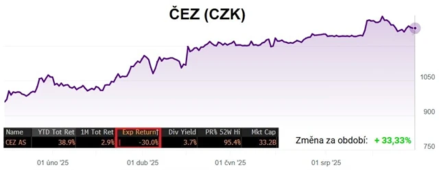 To vše v době, kdy cena akcií společnosti výrazně narostla. Data agentury Bloomberg ukazují, že zatímco investoři titulu dosud nebývale věří, analytici jsou o poznání skeptičtější. Jejich průměrná cílová cena akcií ČEZ je zhruba 30 % pod současnou úrovní.