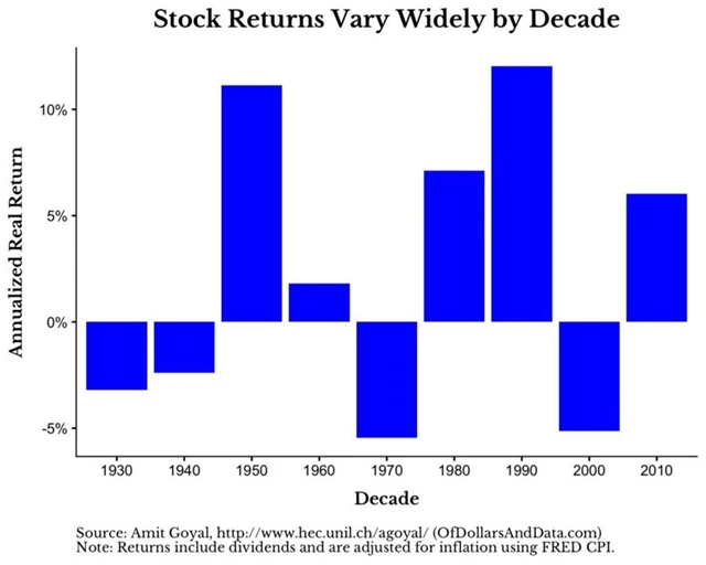 Nebudeme rozebírat teorii relativity a dilataci času. Důležité je, že podobně jsou na tom investoři. Ti totiž stejný jev mohou vnímat jinak, protože mají jiná očekávání, zkušenosti a mnohdy i výsledky samotného investování. Příkladem mohou být výnosy z akcií v různých desetiletích.