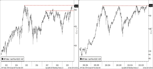 Když v říjnu Jonathan Krinsky ze společnosti Bay Crest Partners upozorňoval na to, že se index evropských akcií vrací na úrovně svého již trojnásobného vrcholu z uplynulých dvaceti let, trh tomu nevěnoval mnoho pozornosti. Se závěrem roku 2019 ale index STOXX Europe 600 dokázal posunout své historické maximum, a tak se predikce možného posilování evropského trhu naplnily.