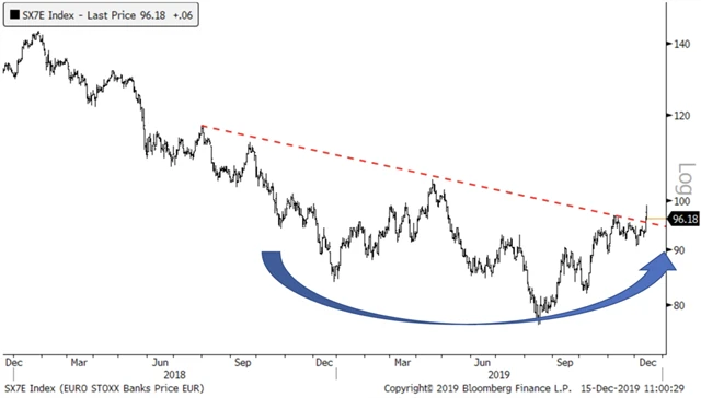 Joshua Brown z Ritholtz Wealth Management sdílí opatrný optimismus. Upozorňuje ale na sektor, který celý evropský trh nadále brzdí, a tím jsou banky a finanční společnosti obecně. "Banky v západní Evropě trpí politikou nulových či záporných sazeb ECB," připomíná Brown. "Pokud by ale došlo na trhu s akciemi bank k obratu, který se v poslední době formuje, podpořilo by to celý trh."