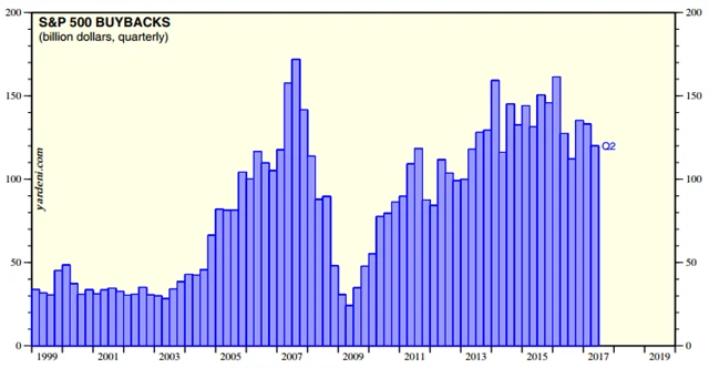 USA - zpětné odkupy akcií (1999-2Q2017)