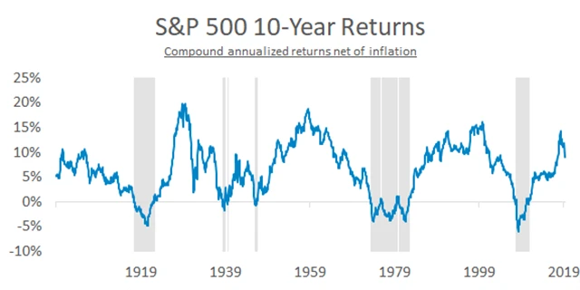 Od roku 1900 akcie v USA v desetiletém horizontu vykazovaly negativní reálný výnos (po odečtení inflace) v desetině případů, takže nejde jen o teoretickou možnost.