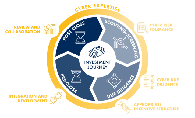 Tyto zásady péče o kybernetickou bezpečnost by měly být začleněny do všech fází investičního procesu. Rámec pro posuzování kybernetické bezpečnosti (cybersecurity due diligence assessment framework) je pak prvním krokem k vytvoření nástroje, který pomáhá identifikovat mezery společnosti ve vedení a řízení rizik v oblasti kybernetického rizika. Skládá se ze dvou částí - organizační bezpečnosti a zabezpečení produktu. Investoři tak mohou hodnotit nejen kybernetickou bezpečnost organizace, ale také bezpečnost technologických inovací nebo produktů.